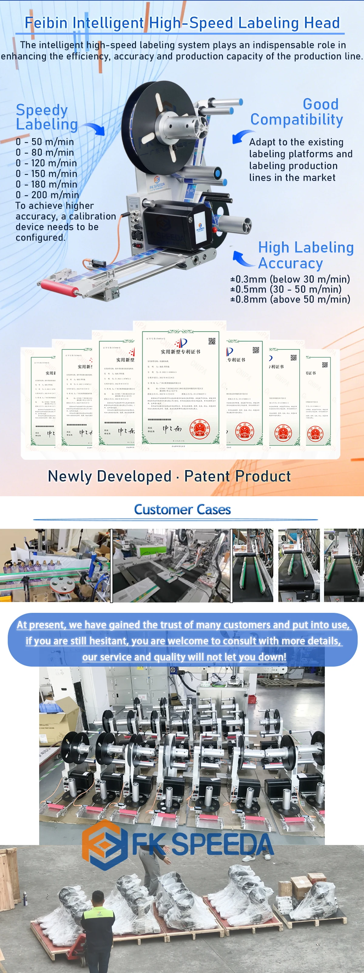 The labeling head adopts modular design and integrated circuit control system. The smart design is suitable for any occasion, with high integration, low installation technology requirements, and one click use.The intelligent high-speed labeling system plays an indispensable role in enhancing the efficiency, accuracy and production capacity of the production line.